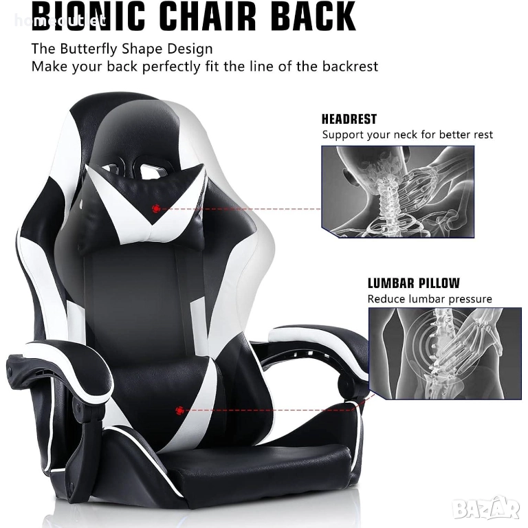 Здравият и практичен стол за игри има товароносимост от 130-150 кг, а 5-звездните въртящи се колелца са тихи и устойчиви на износване, за да предотвратят повреда на пода по време на движение.