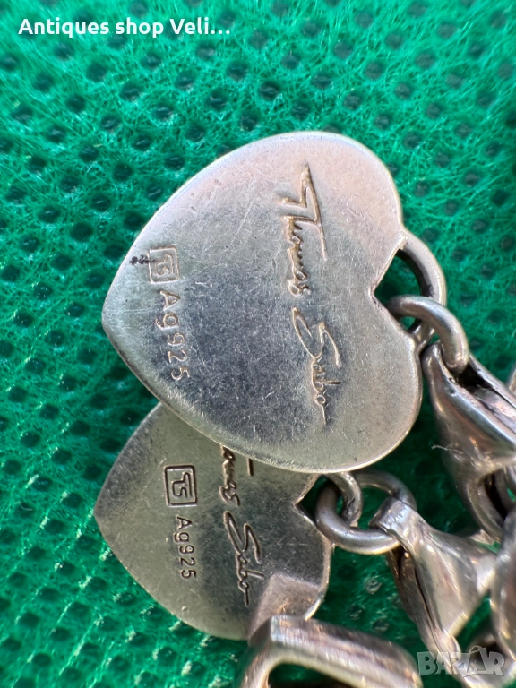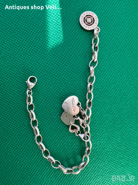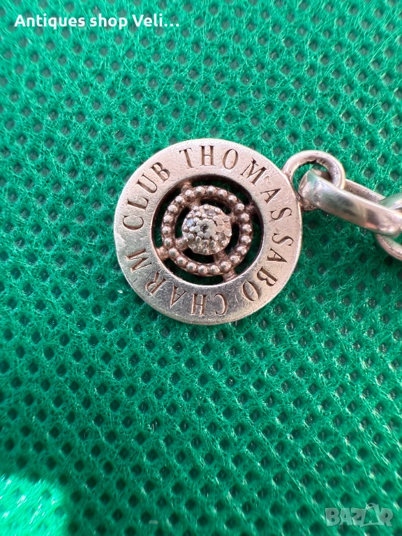 Дизайнерска сребърна гривна Thomas Sabo с 3 броя талисмани. Добро състояние. Предлагаме доставка с Еконт и лично предаване за градовете Велико Търново, Русе и Сливен!