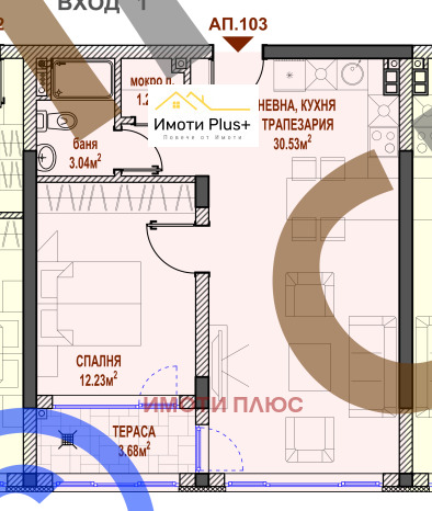 📐 Разпределение: Хол скухненски бокс, спалня, баня с тоалетна и мокро помещение