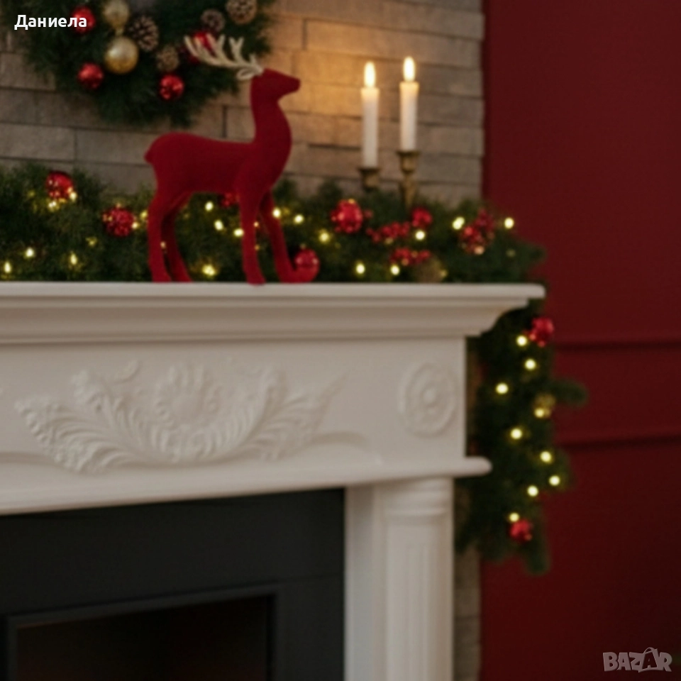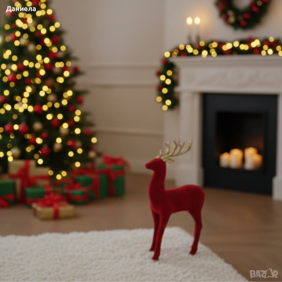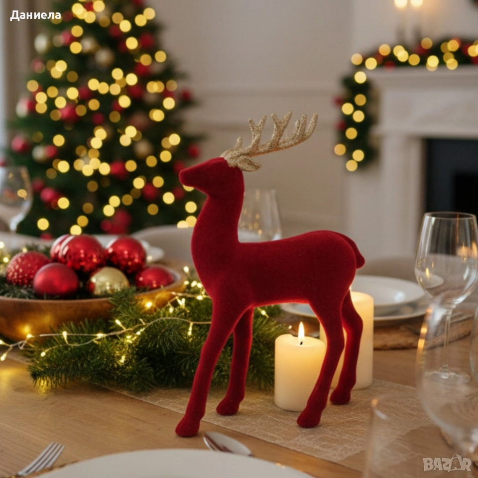 Червен кадифен елен за Коледна украса – Луксозен празничен акцент