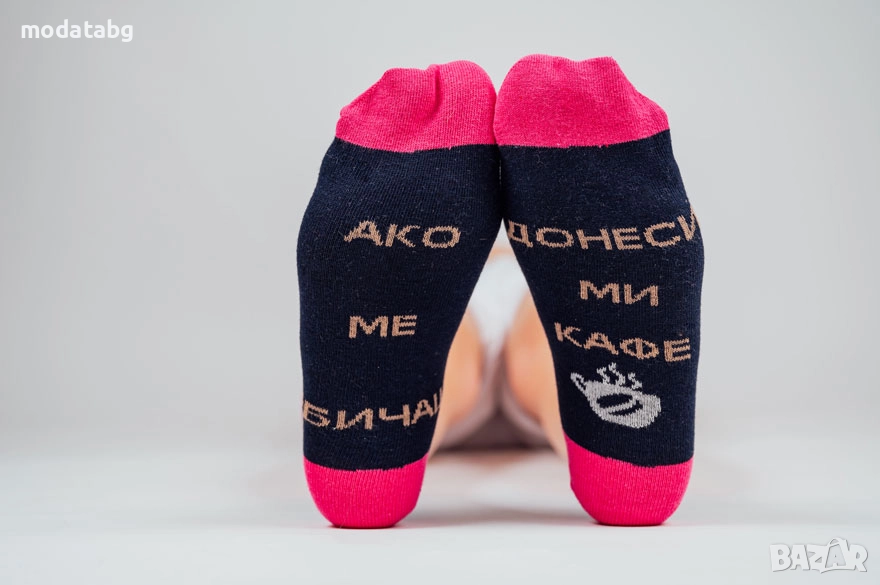Дамски чорапи с надпис: "Ако ме обичаш донеси ми кафе" → Обява 52628545
