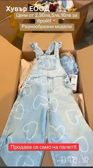Продават се само на палет. Между 500 и 700 артикула вътре.