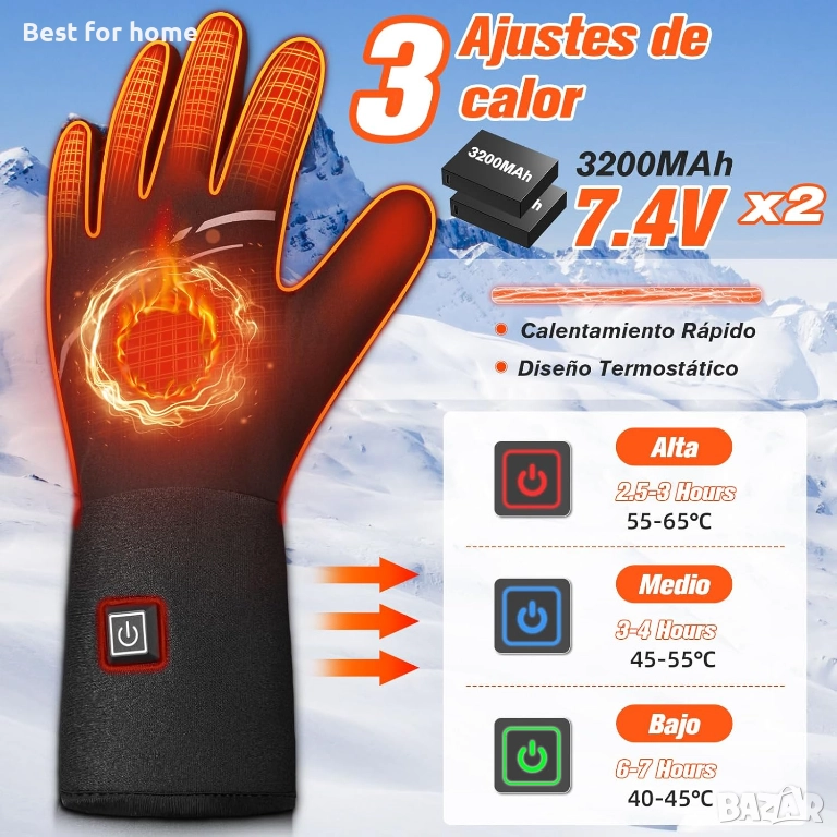 Перфектният зимен подарък: Тези отопляеми ръкавици предлагат изключителна топлина и са идеалният подарък за семейството и приятелите! В комплекта са включени: 1 чифт електрически отопляеми ръкавици, 1 чифт ръкавици за дейности на открито, 2 акумулаторни батерии 7.4V 3000mAh, 1 USB кабел за зареждане и 1 ръководство за потребителя. Продуктът се предлага с едногодишна гаранция. Ако имате някакви въпроси, не се колебайте да се свържете с нас. Ще ви предоставим най-доброто решение в рамките на 24 часа.