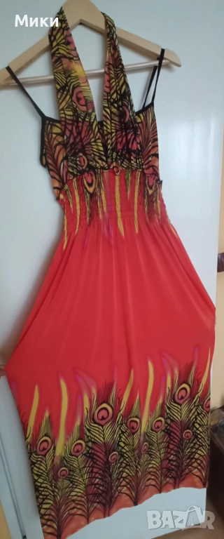 4. Оранжева Елегантна дълга рокля бохемски стил с пауни, размер М - 16лв