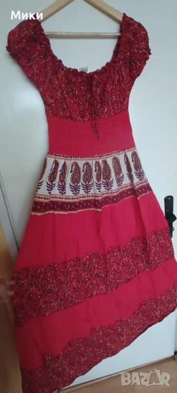 2. Червена Памучна дълга рокля с голямо деколте, 9лв, S/M
