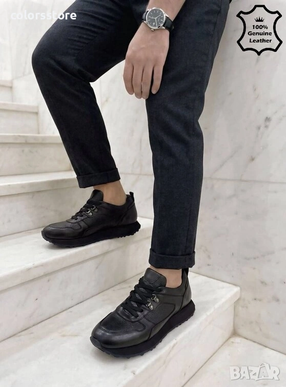 Мъжки спортни обувки - черна ЕСТЕСТВЕНА кожа - 1193-3