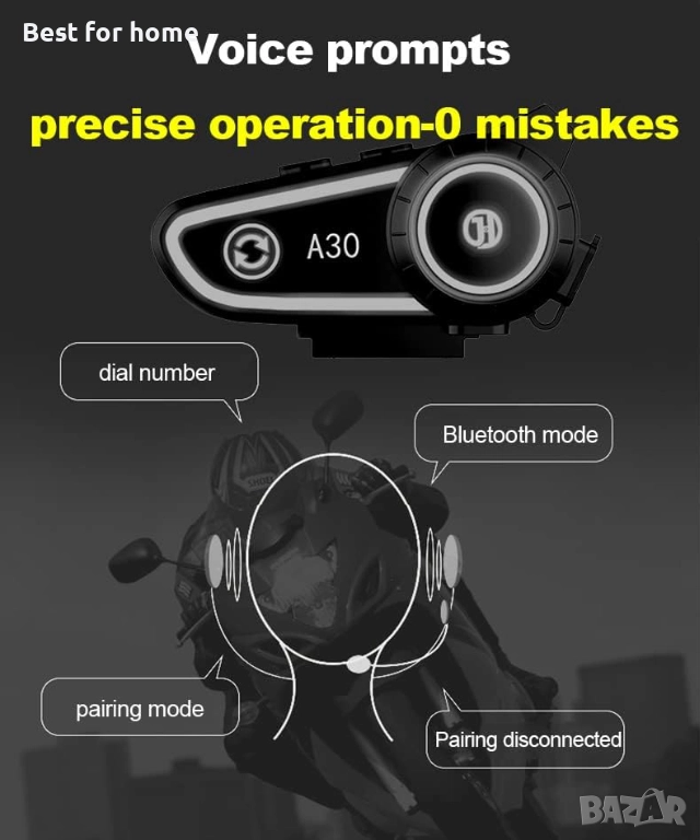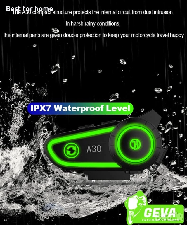 【Водоустойчивост IPX7 и широко приложение】Новата комуникационна система за мотоциклети A30 е водоустойчива по стандарт IPX7 и може да се справи с тежки метеорологични условия като прах, дъжд, буря, сняг и ниска температура от -15°F. Научният дизайн я прави идеална за повечето отворени, модулни и каски с пълно покритие.