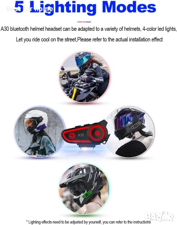 【Свободно превключване на 4-цветни LED светлини】Безжичните слушалки за каска A30 имат вграден усъвършенстван чип. Чрез бутона за регулиране на светлината, натиснете веднъж за синьо, зелено и червено, за да се сменят свободно, натиснете два пъти за синята светлина, за да свети винаги, натиснете три пъти за зелената светлина, натиснете четири пъти за постоянна червена светлина. Geva A30 ви предоставя професионални и готини аксесоари за каски.