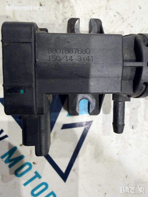 9801887680 електрически клапан, соленоид от Citroen C-Elysee 1.6 HDi, двигател 9HP, 92 кс., 5 скорости, 2014 г., Ситроен Ц Елизе, 1.6 ХДИ, 92 кс., 5 ск. 2014 г. в автоморга Delev Motors, между с. Каменар и с. Куманово гр. Варна.