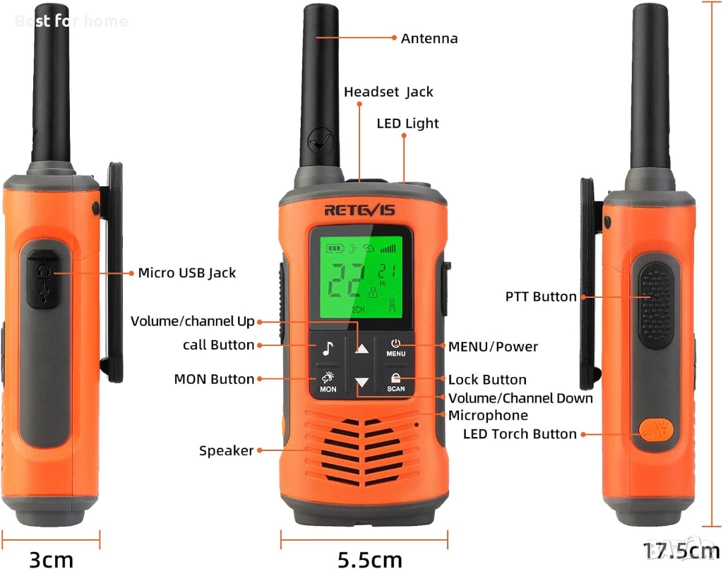 1,5 км (около 1 миля) обхват на разговори - постигане на стабилна комуникация в открити среди (като например на открито, езера, полета), лесно справяне със сцени като каране на ски, туризъм, риболов и др.