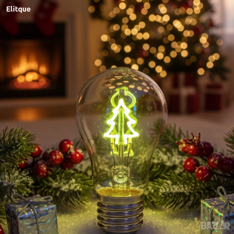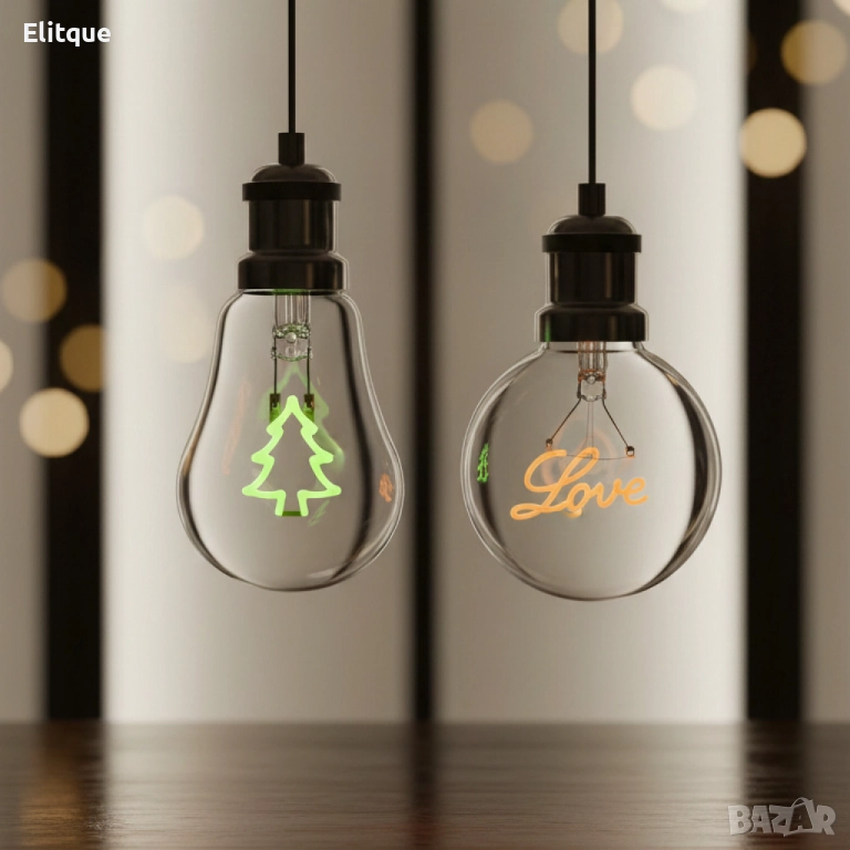 Коледна LED декоративна крушка с фигура – Елха / Love – Топъл празничен акцент за дома и подарък