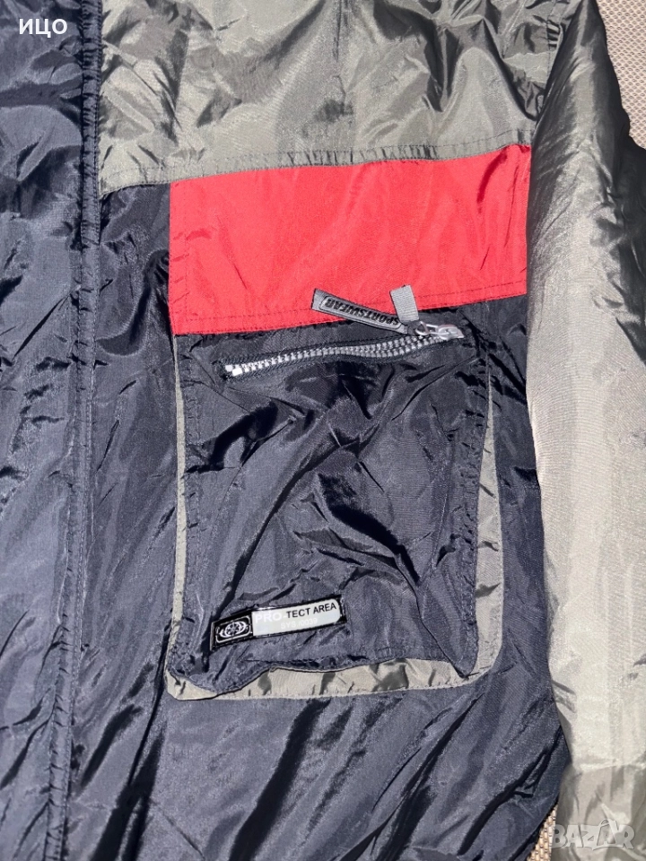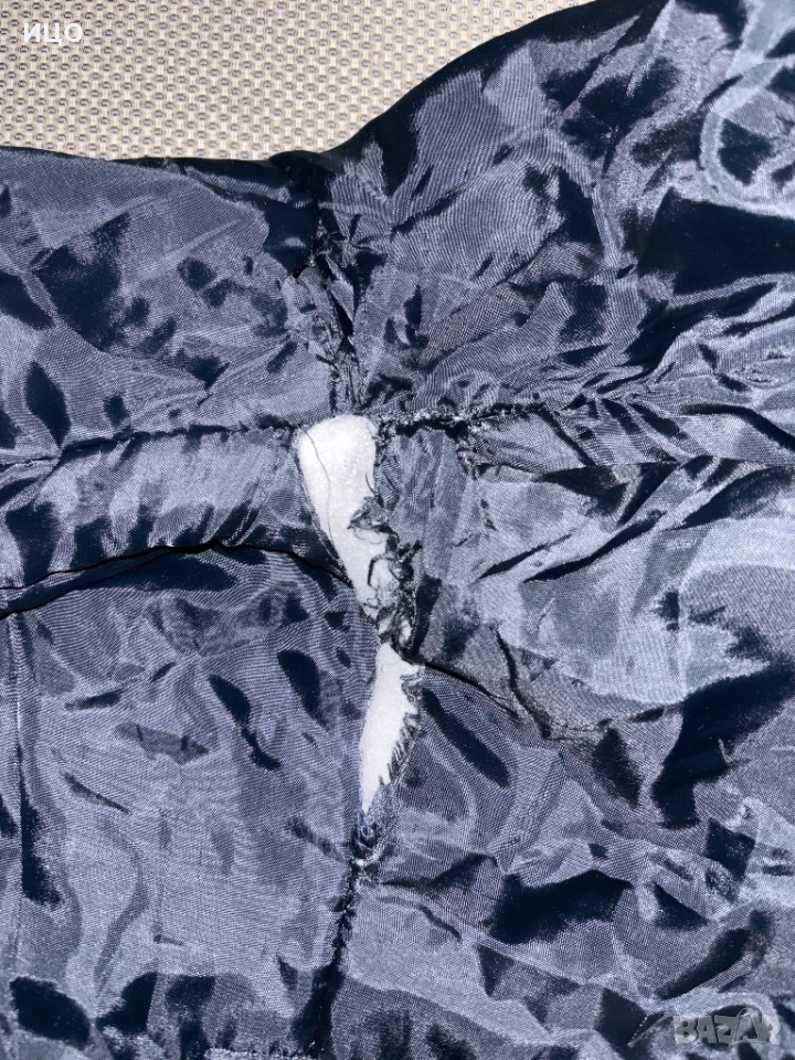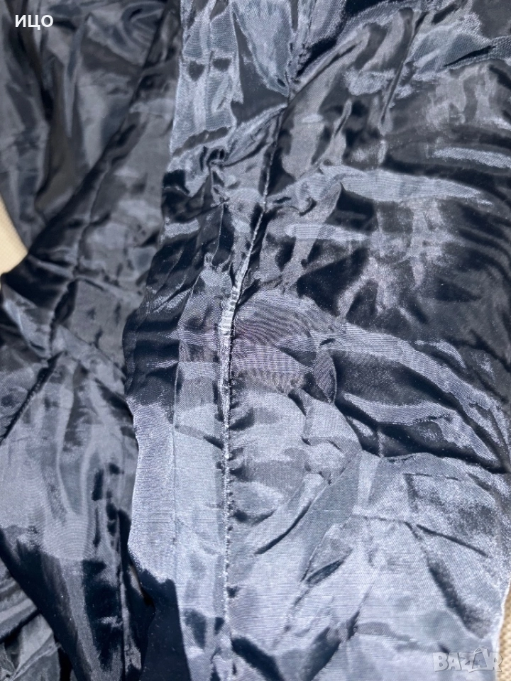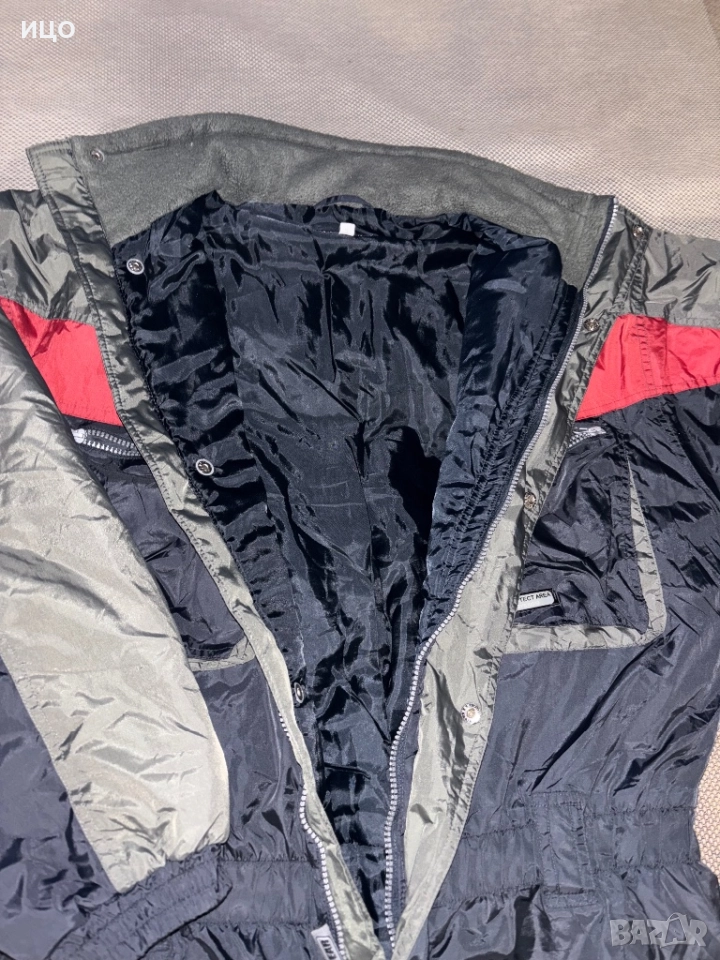 Отлично състояние. Забележката е че от вътрешния край в средата е разшито и на още едно място е пред разшиване, има снимки. Различни джобове, с ластик на кръста и качулка.