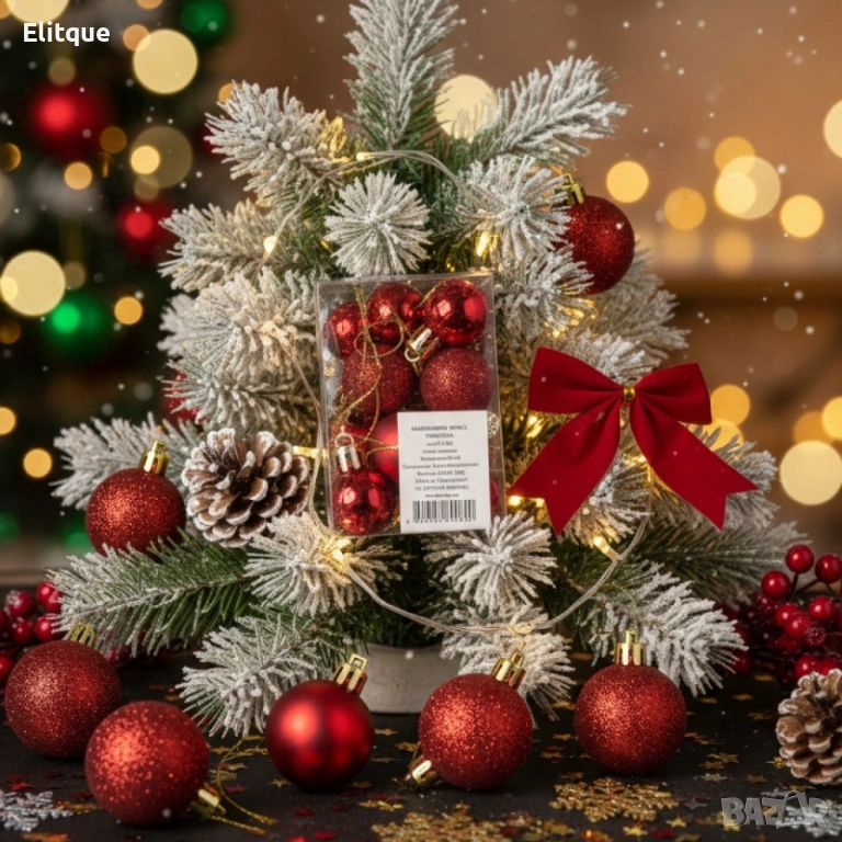 Комплект коледни топки 2 см – сребърни (8 бр.) и червени (16 бр.)