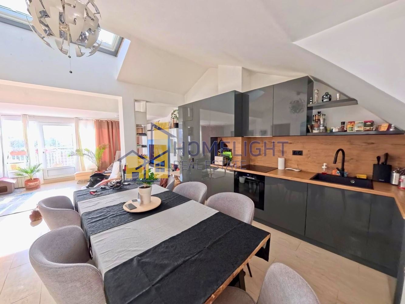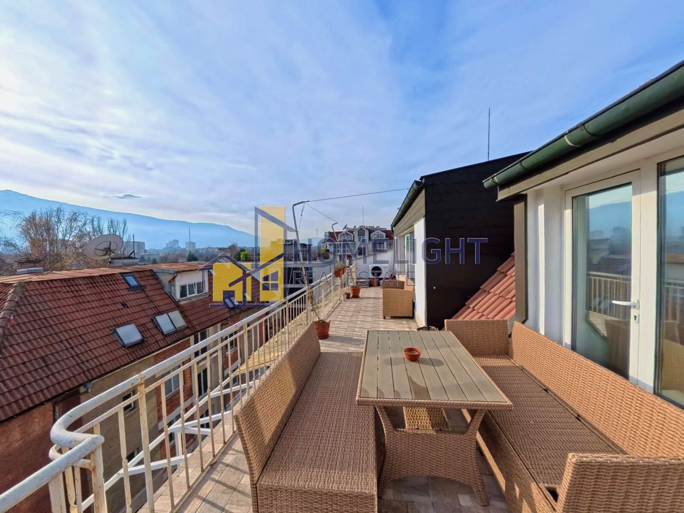Имотът е пентхаус, заемащ целия последен етаж на добре поддържана тухлена сграда с контролиран достъп. Жилището е с площ 118,94 кв.м по нотариален акт, от които 31 кв.м. представлява голяма южна тераса с прекрасна гледка към Витоша. Изложение: юг, изток, север.