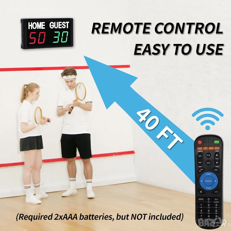 【Дистанционно управление】Електронното табло е оборудвано с дистанционно управление, лесно за управление, разстояние от 12 метра. Лесно е да записвате резултати, да регулирате яркостта и да активирате звуковия сигнал. Много подходящо за всякакви спортове на закрито/открито.