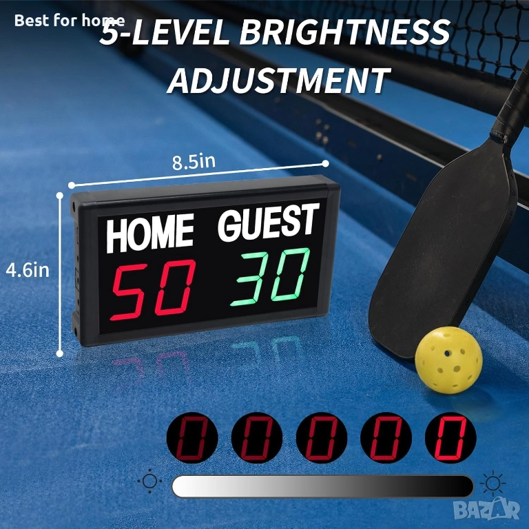 【Регулируема яркост】Електронният уред за отчитане на резултатите разполага с 5 нива на регулиране на яркостта, така че можете ясно да виждате промените в резултатите. Вграден е и силен зумер, което го прави практичен за всякакви игри на открито!