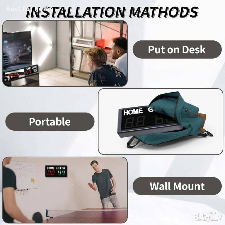 【Многофункционално дигитално табло】Електронното табло е с преносим дизайн и може да се използва в много игри на закрито и открито. Като баскетбол, волейбол, корнхол, бадминтон и бейзбол.