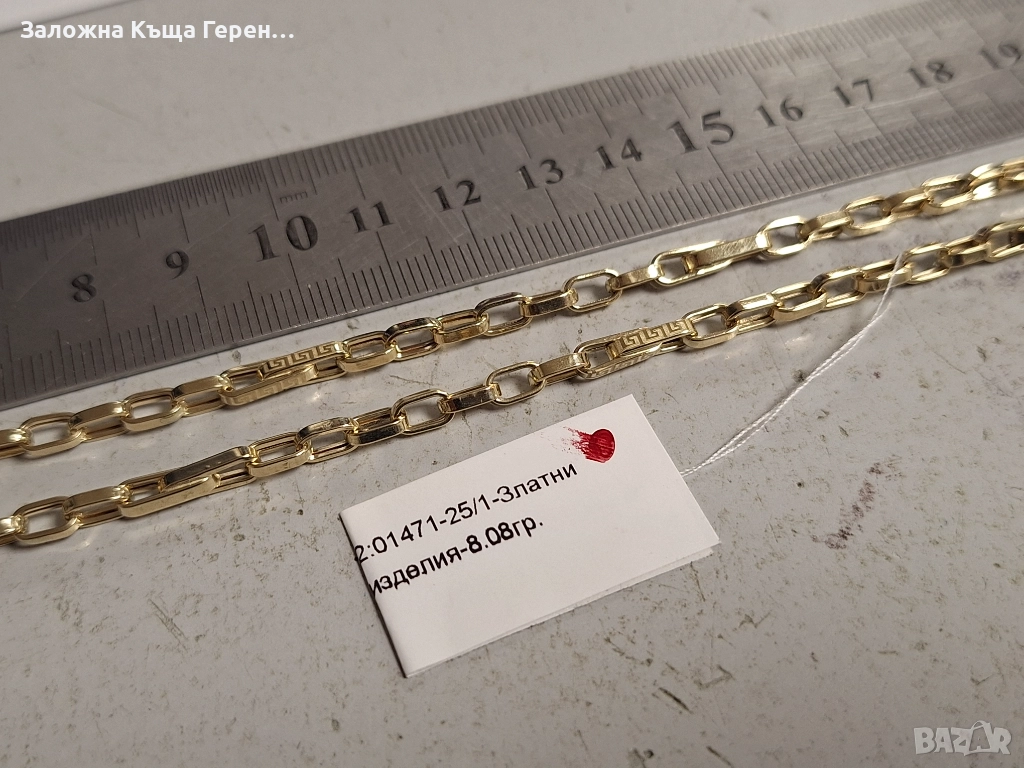 Златен синджир 8,08гр.14к, снимка 1 - Колиета, медальони, синджири - 52629774 Златен синджир 8,08гр.14к, снимка 2 - Колиета, медальони, синджири - 52629774 Златен синджир 8,08гр.14к, снимка 3 - Колиета, медальони, синджири - 52629774 Златен синджир 8,08гр.14к, снимка 4 - Колиета, медальони, синджири - 52629774 1/4