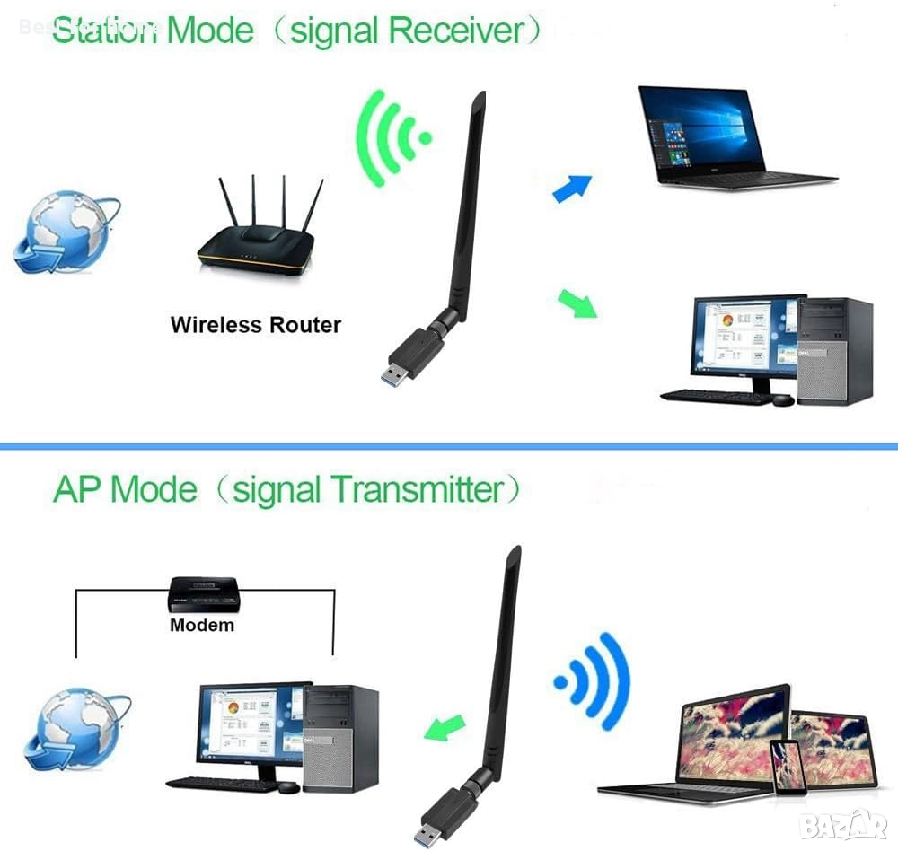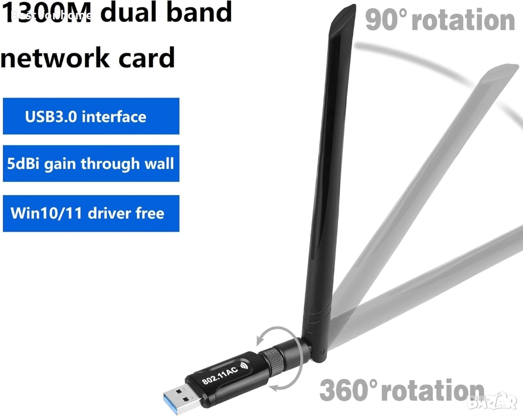Суперскоростен USB 3.0 - USB 3.0 поддържа скорости на трансфер до 5.8Gbps - 10 пъти по-бързо от USB 2.0, осигурява максимална производителност на Wi-Fi адаптера и по-стабилна интернет връзка. Обратно съвместим с USB 2.0 и 1.1 устройства.