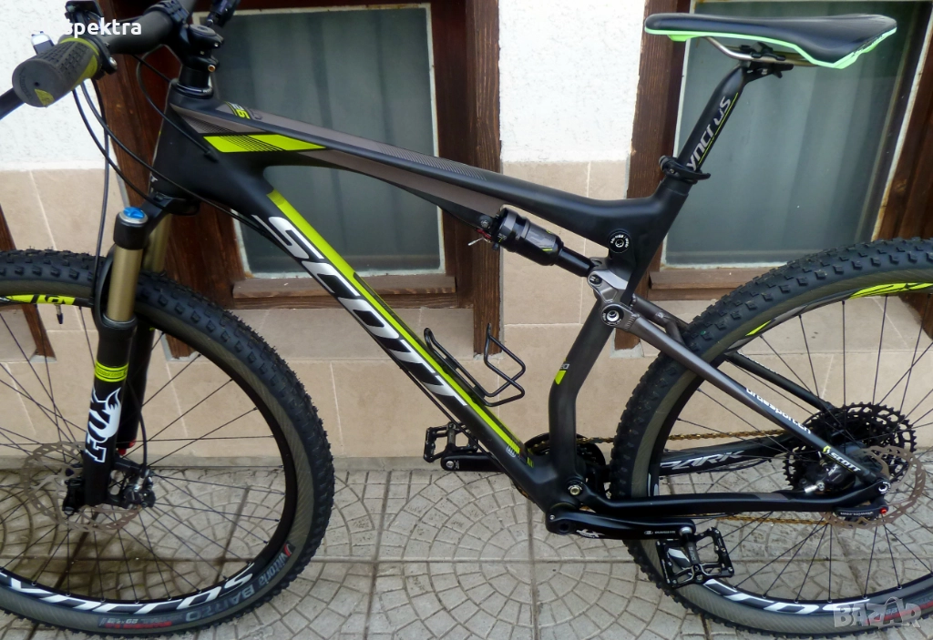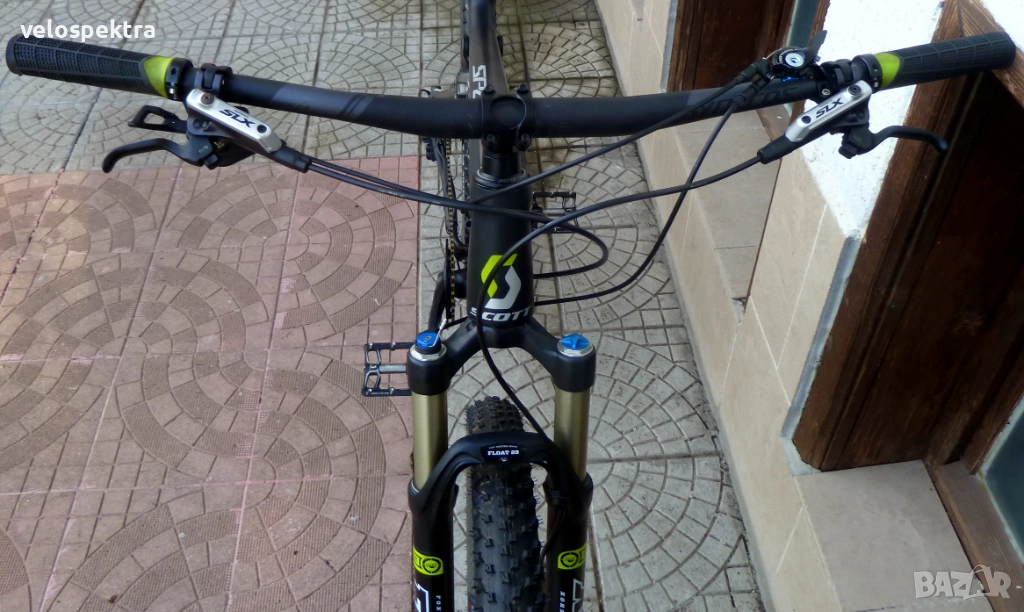 Преден амортисьор ФОКС Флоат 140 mm Air с заключване директно от кормилото , ребаунт и компресия (въздушна) заден шок СКОТТ 180mm Air заключване директно от кормилото , ребаунт и компресия (въздушен)