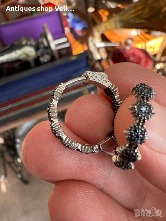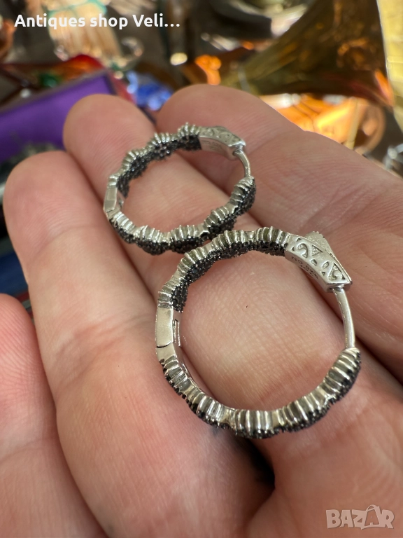 Сребърни обеци с черни камъни №7675 → Обява 52630335