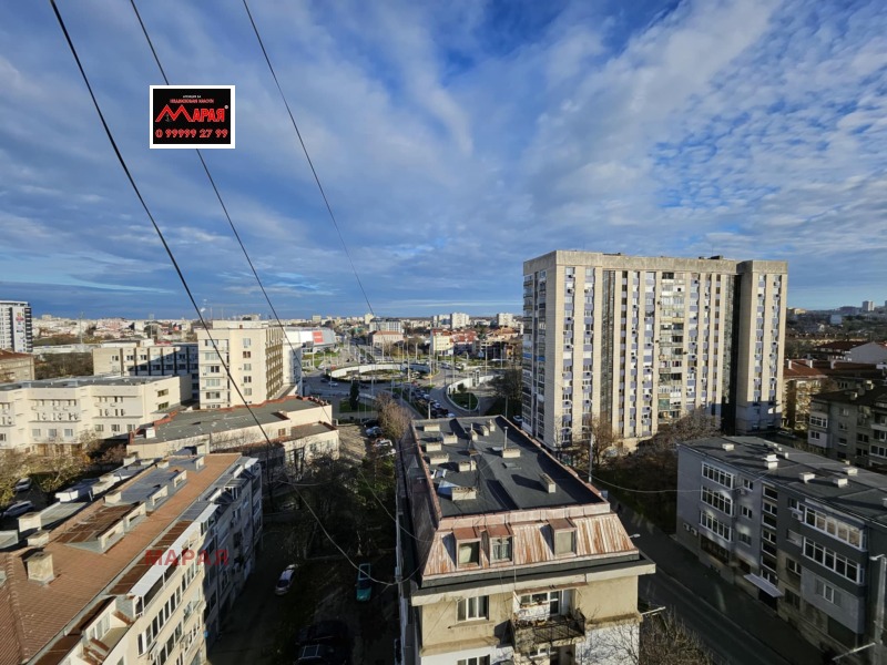 Русе до кръговото и спортната зала Арена. Представлява просторен, тристаен, монолитен апартамент със 92 кв.м. чиста жилищна площ, на единадесети етаж с разкриваща панорамна гледка . Състои се от просторен и слънчев хол, голяма кухня с остъклена тераса, широко антре с дълъг коридор и две отделни самостоятелни спални, едната от които е с открита тераса, килер, отделни баня и тоалетна, голяма маза.