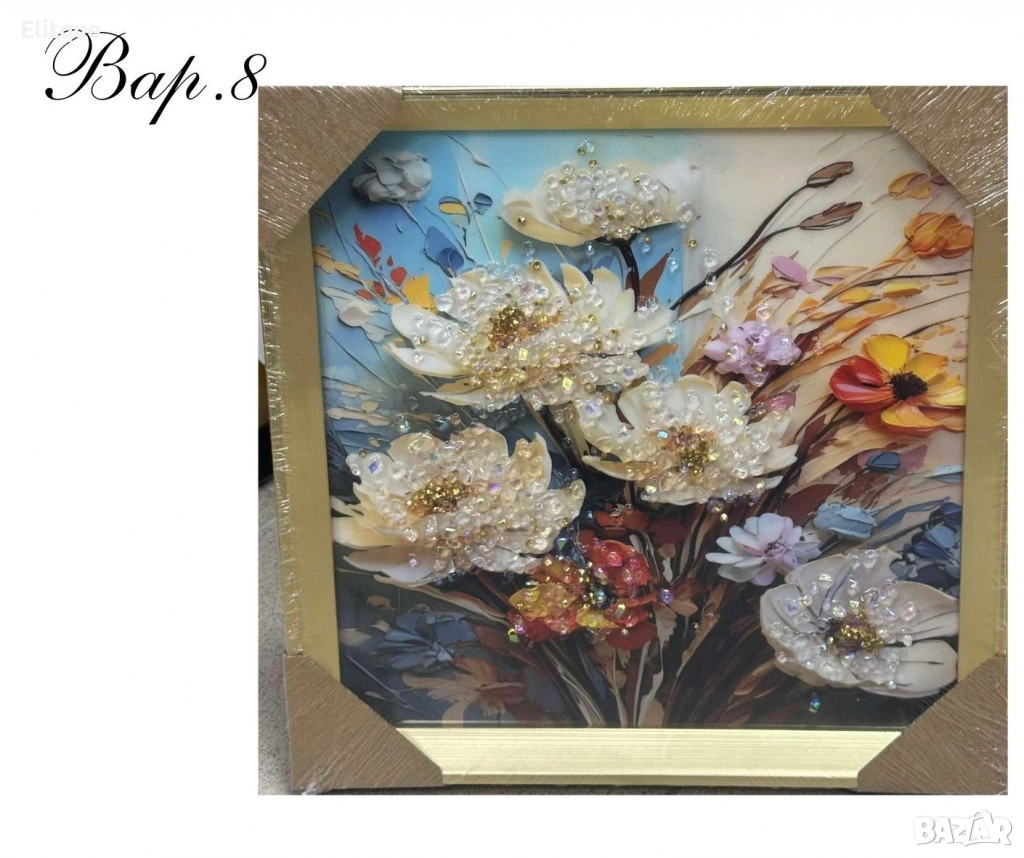 Диамантени картини 30 х 30 см с пластмасова рамка са перфектен избор за всяко пространство, добавяйки стил и елегантност. Всяка картина е изработена с многоцветни диаманти, които създават фини детайли и живи цветове, предлагащи уникално визуално изживяване. Отпечатаните изображения са с високо качество, като всяка картина е внимателно проектирана, за да се постигне максимална изразителност и реалистичност. Допълнителните блестящи кристали осигуряват допълнителна елегантност и светлина. Те се предлагат в 13 различни варианта, като всяка картина ще внесе топлина и красота във всяко помещение.