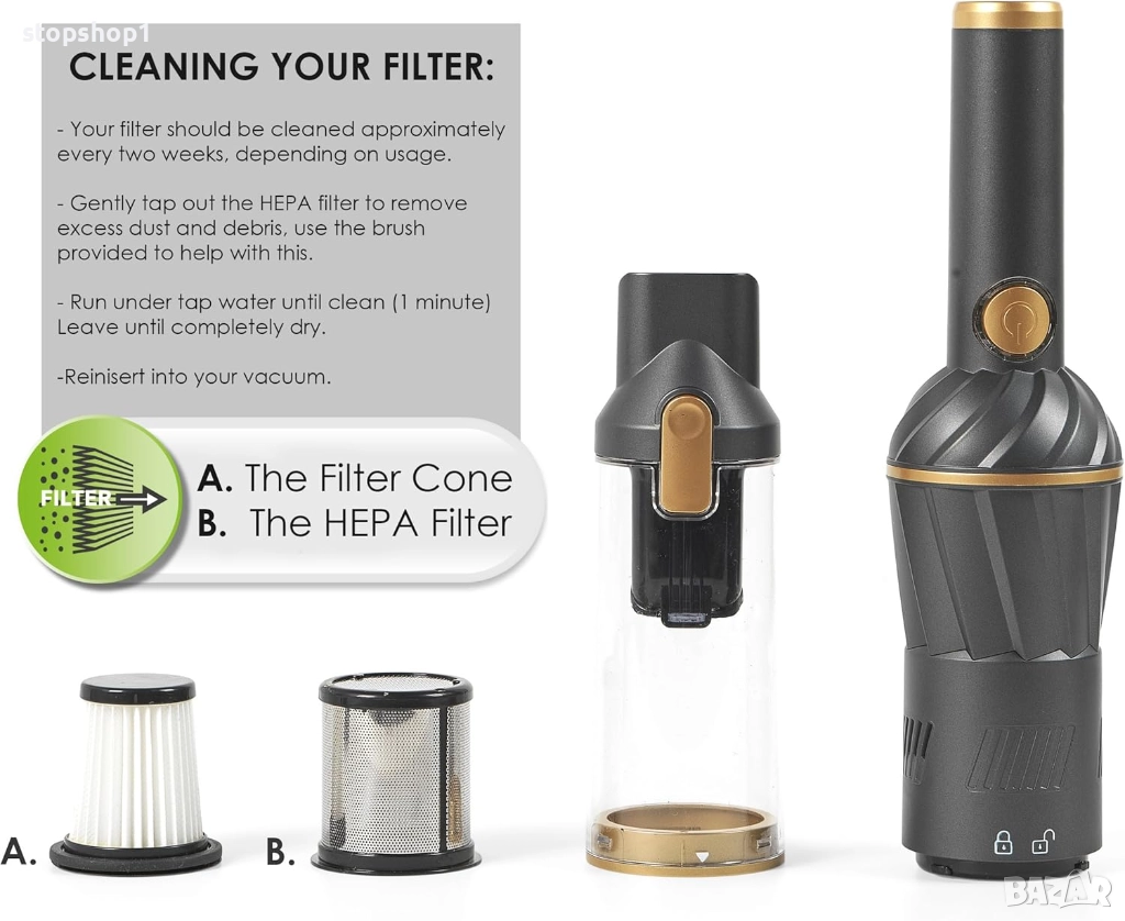 Ръчна прахосмукачка Beldray BEL01096 Airlite – Акумулаторна безжична прахосмукачка, лека преносима мини прахосмукачка за кола, основа за съхранение/зареждане на плот, HEPA филтър, 11.1 V, 2 настройки на скоростта, графит