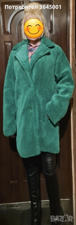 Зелено,модерно, топло и меко зимно палто,олекотено . Размер S/M / НОВО / Продава се и чантата/Нова/