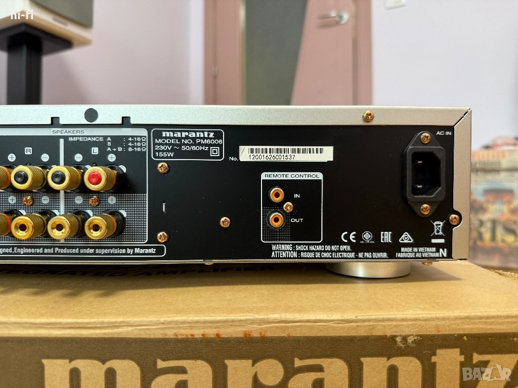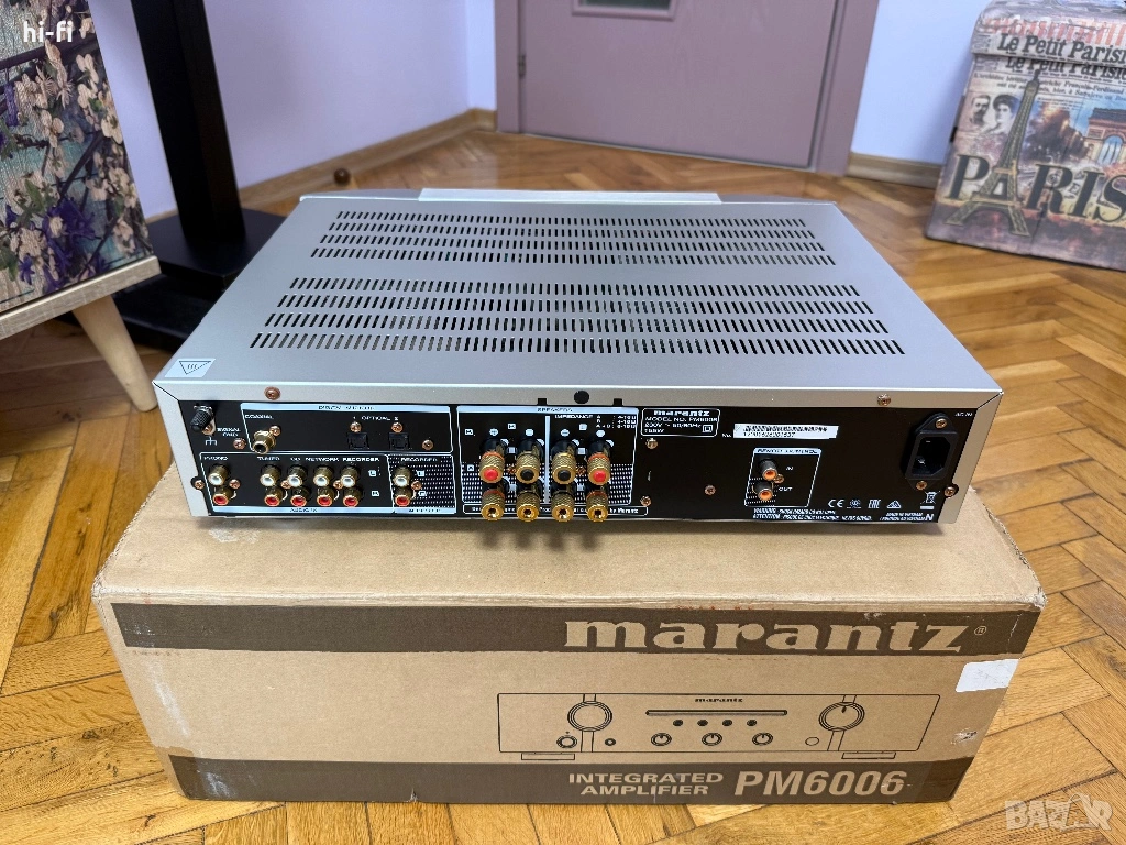 Всички характеристики - като пет аналогови аудио входа, включително фоно, две двойки позлатени връзки за високоговорители с удобството на двойното окабеляване и дистанционно управление - всички са все още там. Екранираният тороидален трансформатор с по-нисък импеданс, както и персонализираните компоненти и уникалните Marantz HDAM модули се грижат за мощен, динамичен и детайлен оригинален звук на Marantz. За да подобри производителността на усилвателя, PM6006 използва подбрани ELNA кондензатори в захранването си за цифровия каскад и предусилвателя, заедно с оптимизиращи звука механични промени в каскадата на усилвателя на мощността.