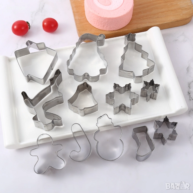 Коледни форми за сладки, метални резци за бисквитки, фигурки за тесто – този комплект включва 12 различни коледни форми, идеални за приготвяне на празнични сладки, декорации и креативни десерти. Формите са изработени от метал и имат чисти контури, които правят изрязването лесно, а фигурите – добре оформени.