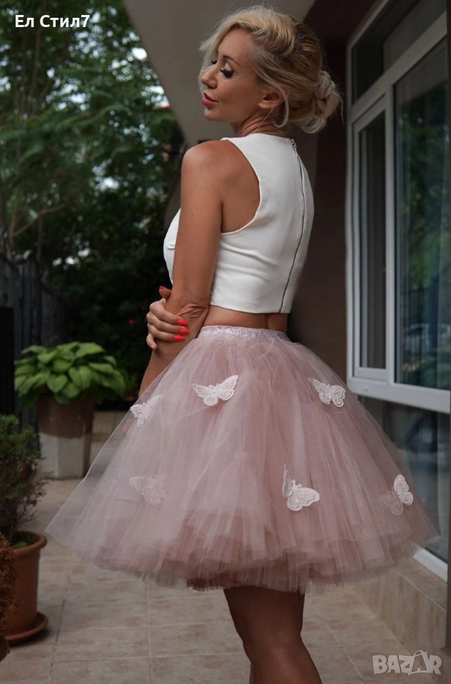 📌#Ефектна #пола с пеперуди Цвят пудра ХС С М Л размер Цена 115лв/58.80 € ЕКОНТ → Обява 52631438