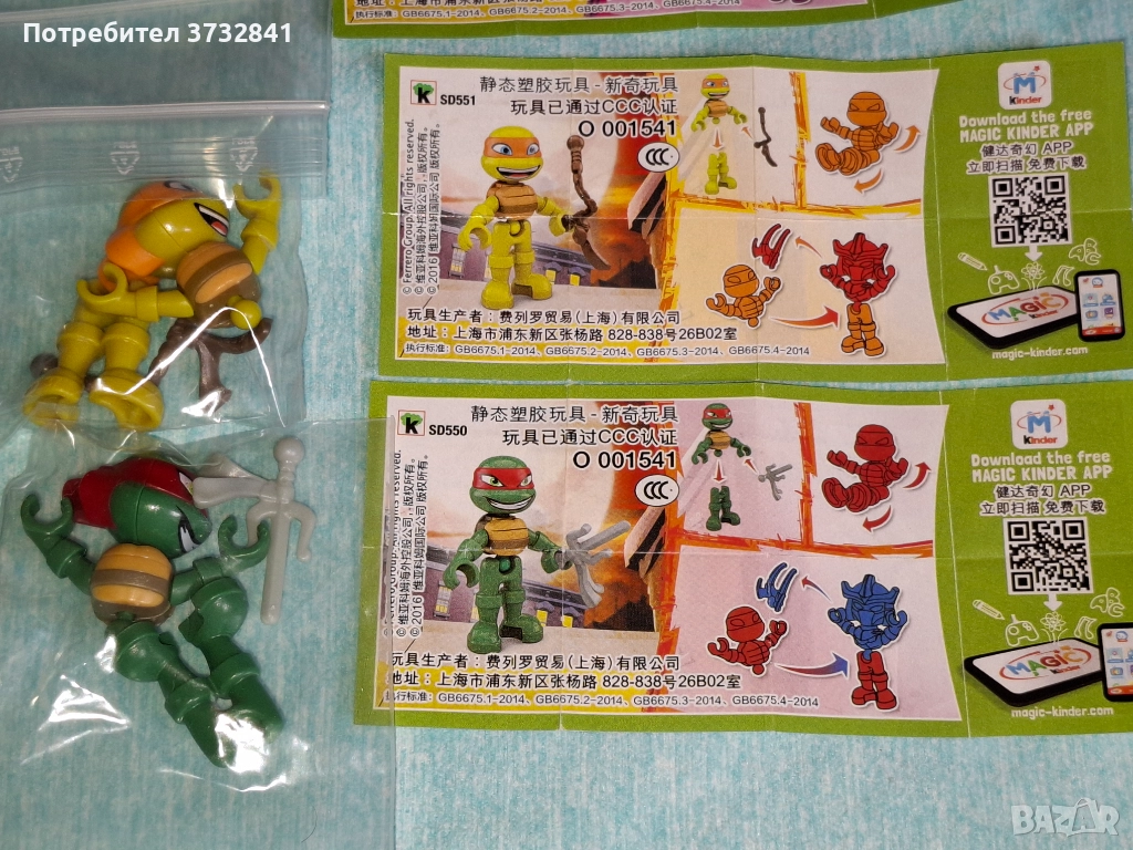 Киндер Костенурките нинджа серия от Хонгконг 2016 година Kinder → Обява 52631770
