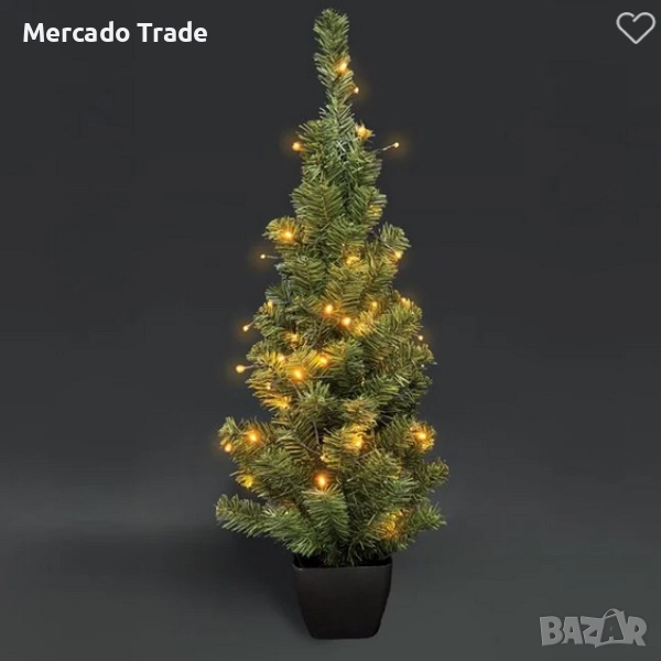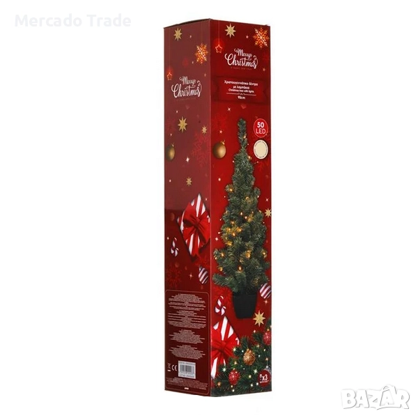 Декоративна коледна настолна елха на батерии в саксия, 50 LED, 90см