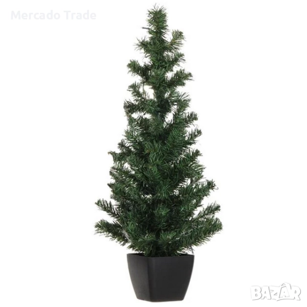 Коледна декоративна настолна елха със зелени клонки, 50 светодиода, без програма и пластмасова квадратна основа за саксия.