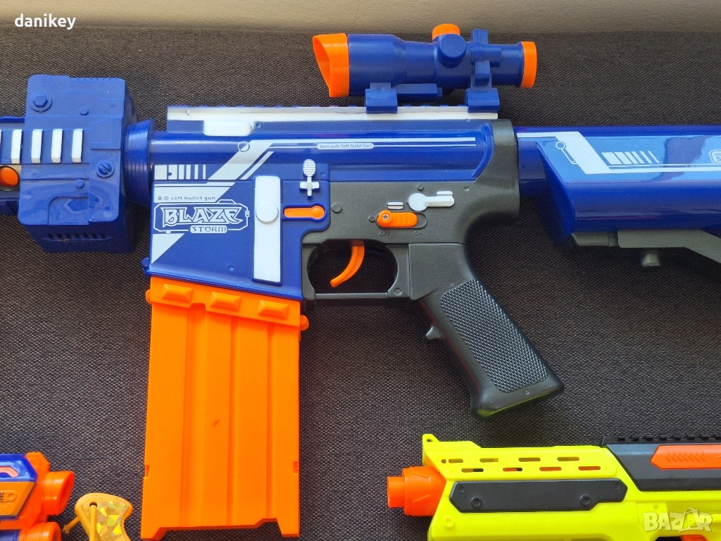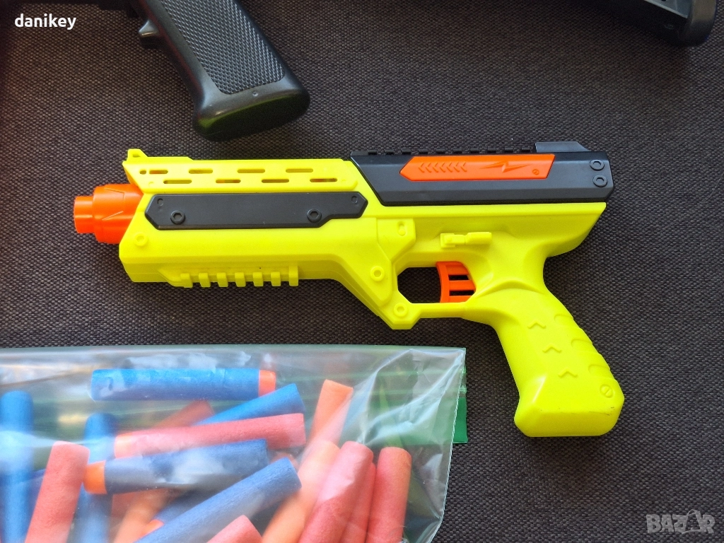 Пистолети, пушка и арбалет тип Нърф + патрони → Обява 52632094