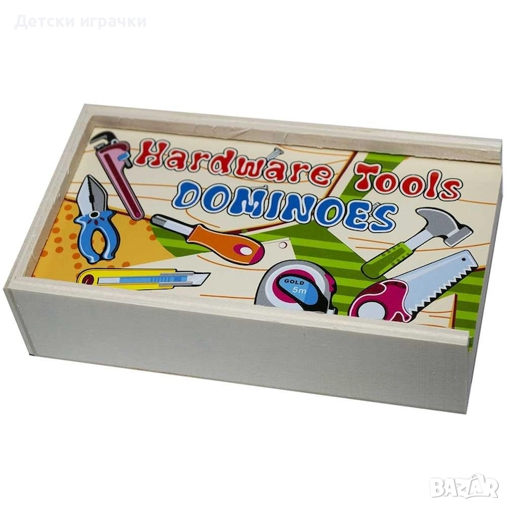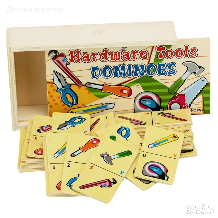 Дървено домино с инструменти и цифри