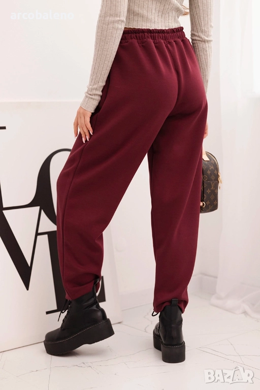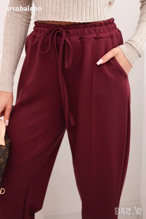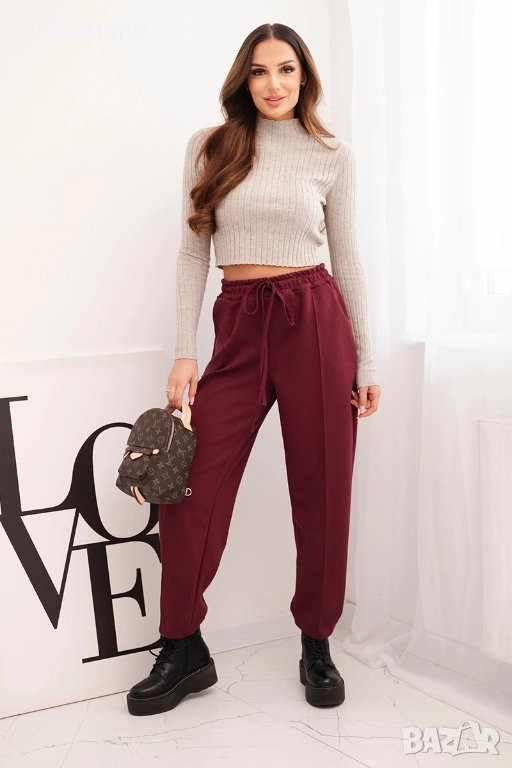 Тези елегантни дамски панталони с висока талия са перфектният избор за жени, които ценят комбинацията от комфорт и стил. Изработени от еластичен, мек материал, те перфектно прилягат към силуета, като същевременно осигуряват комфорт през целия ден. Моделът е с еластична талия с допълнителна връзка и практични странични джобове. Семплата кройка с леко стеснени крачоли прави тези панталони подходящи за ежедневието, бизнеса и елегантно ежедневните тоалети.