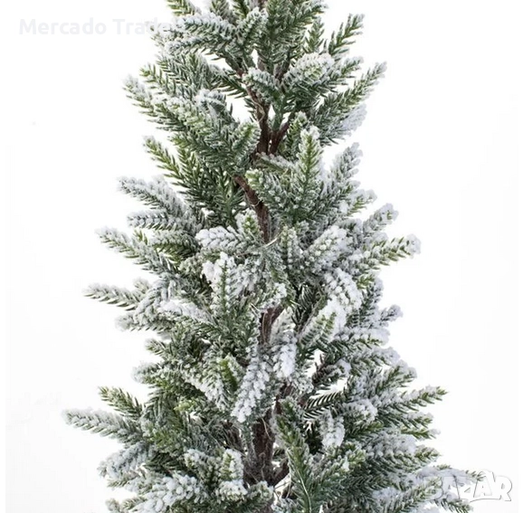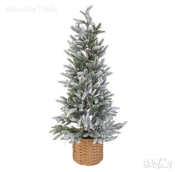 Декоративна коледна елха, в саксия с плетен дизайн, снежни клони и LED.