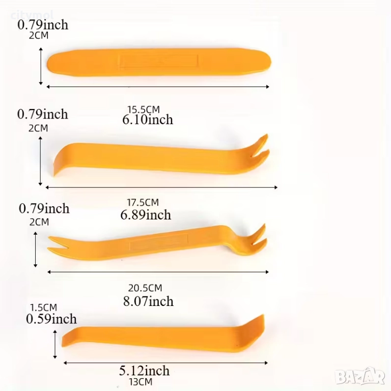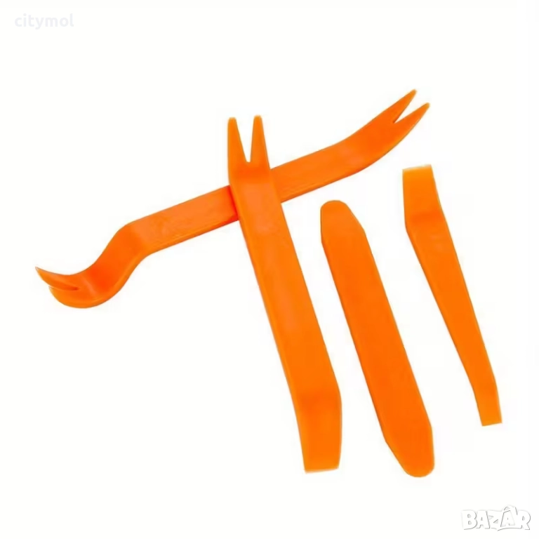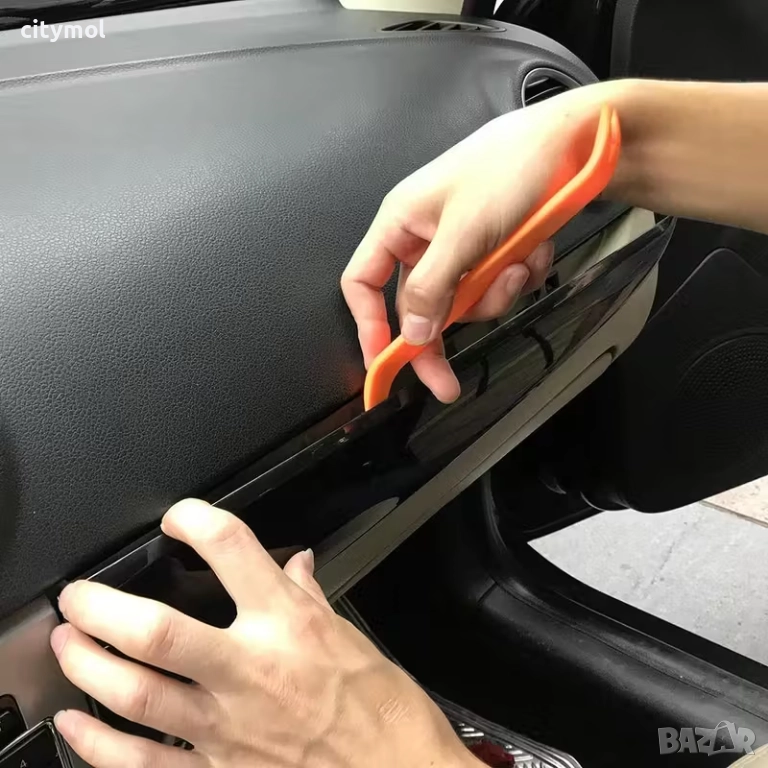 Комплект пластмасови инструменти за демонтаж на тапицерия, кори на вратите, шипки-копки, лайсни, панели и други части по интериора на автомобила. С този комплект лесно и бързо ще старите копки без на навредите на пластмасата и боята по автомобила. Различните размери ще ви осигурят безупречно и перфектно отстраняване на частите.