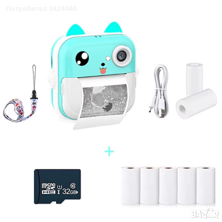 Подарете на детето си зелен детски фотоапарат, който съчетава висококачествена снимка и моментален печат! С двойна камера и впечатляваща 24 MP резолюция, тази камера е създадена за въображение. Термопринтерът без мастило работи чисто и икономично, като в комплекта са включени 3 ролки термохартия. Освен снимки, можете да записвате и Full HD 1080P видео, да слушате музика през MP3 плейъра и да играете забавни вградени игри.