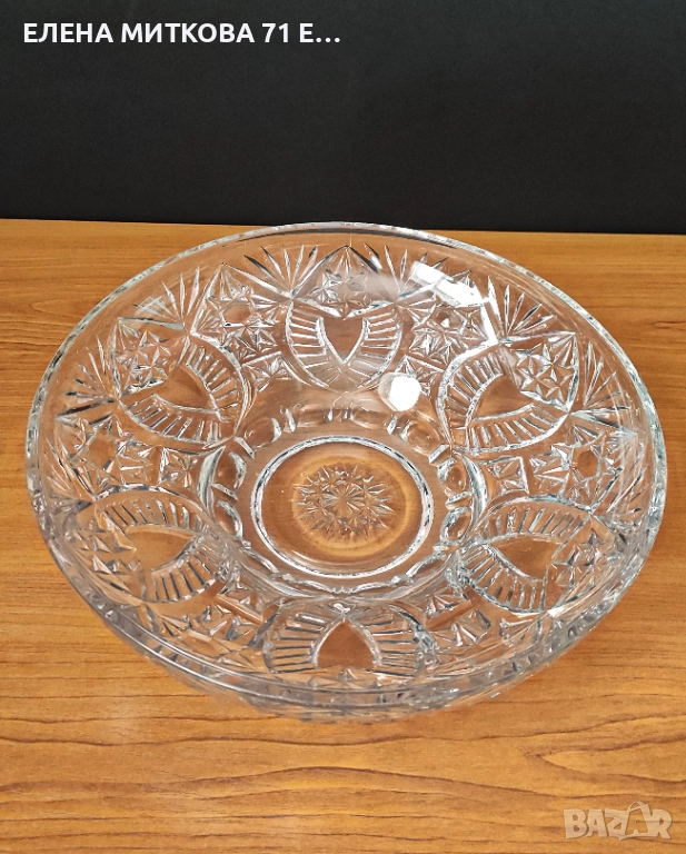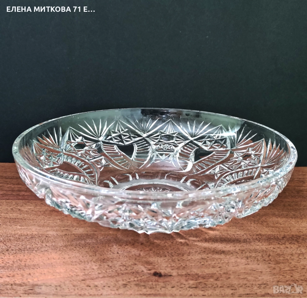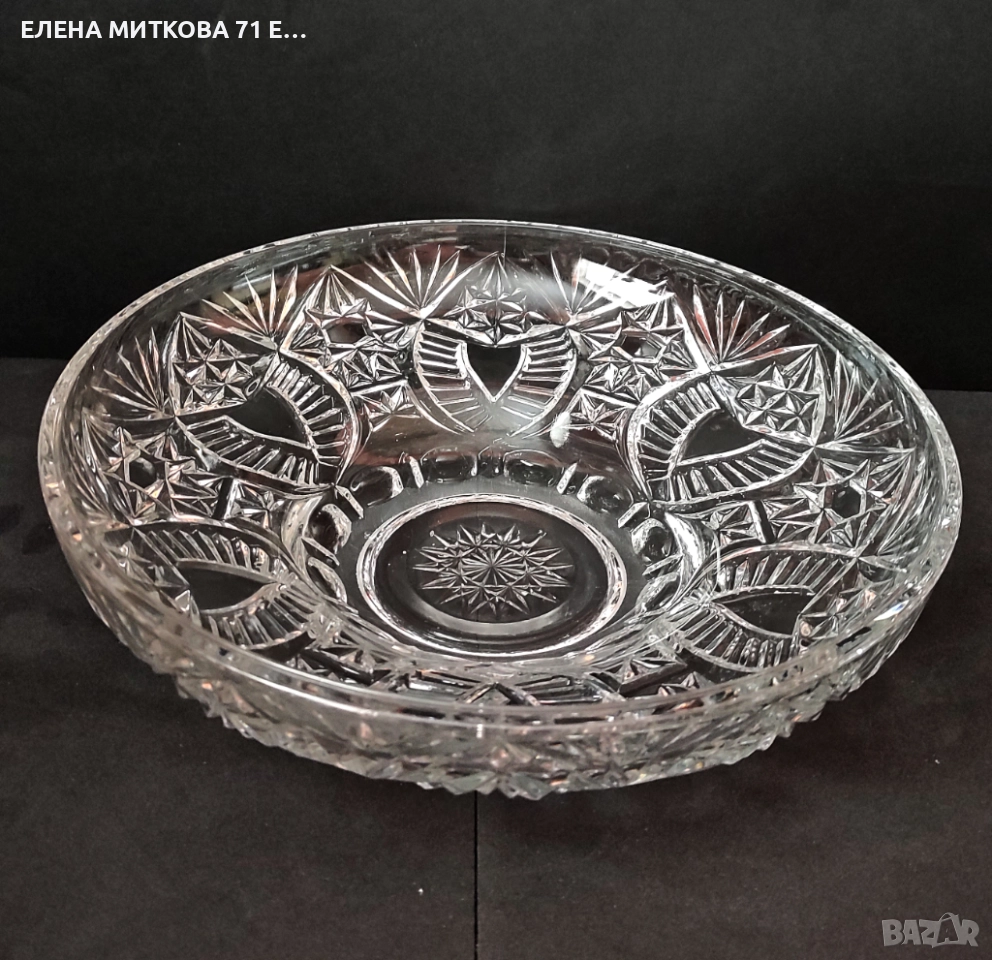 Една прекрасна кристална фруктиера с интересна форма и ниско удебелено столче → Обява 52632761
