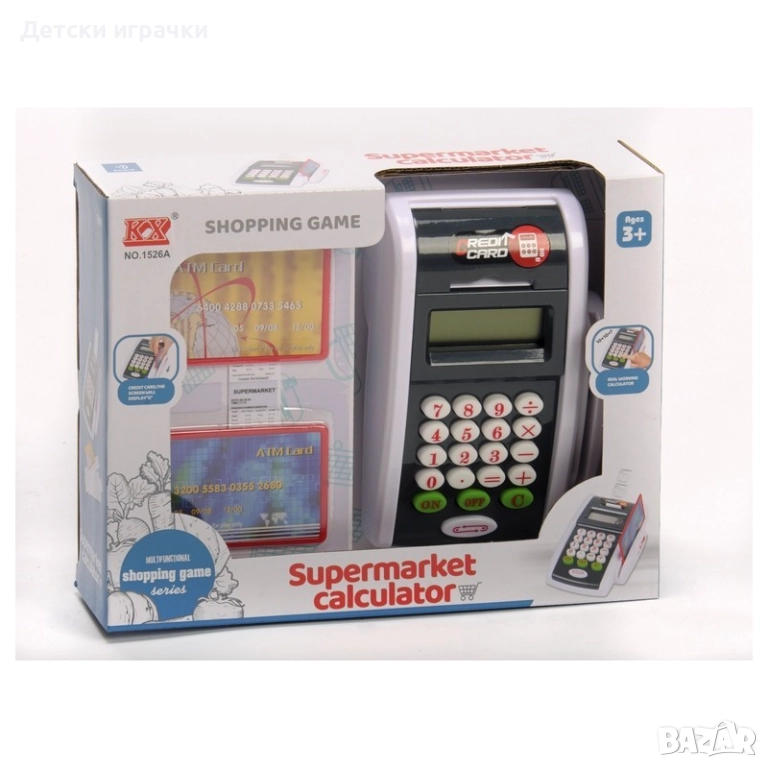 С реалистичен калкулатор, звук при работа, механично движение на касовата лента и действащ POS четец
