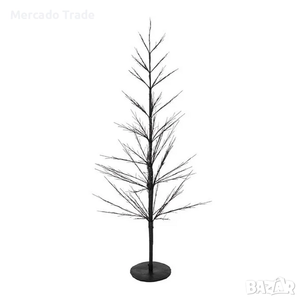Коледна елха, черна с тънки клонки, осветени с 600 светодиода и 8 програми. Има полистиролна основа и лесен монтаж.