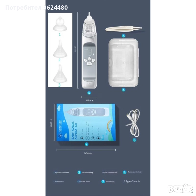1 брой Електрически аспиратор за нос за бебета