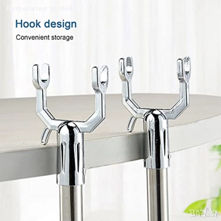 Кука: U-образна кука за лесно и сигурно захващане на закачалки.