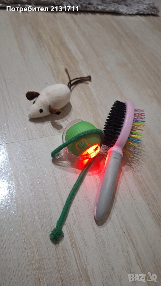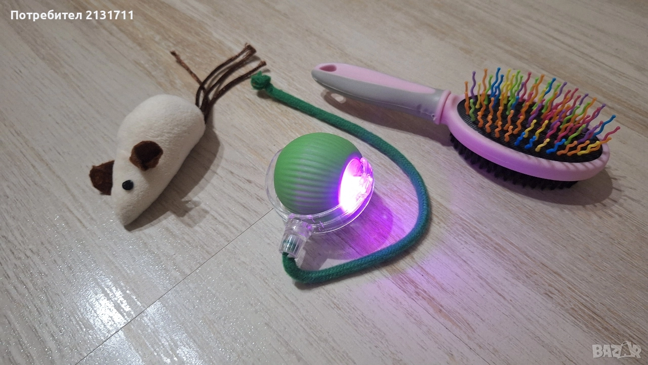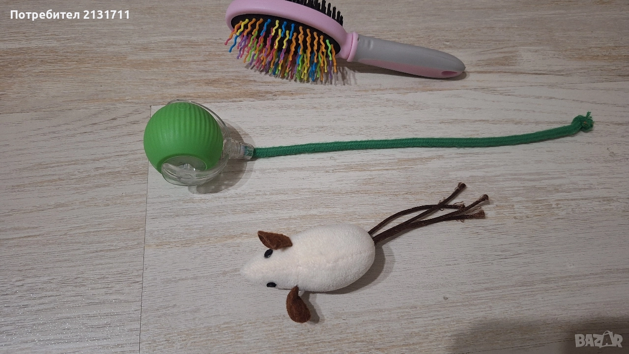 Самозадвижваща се интерактивна играчка, играчка мишка и четка за котка или куче и трите са на обща стойност 13 лева. Позволих си да напиша състояние ново, защото нашето котенце което беше на четири месеца си поигра само за няколко дни с тях. Умна топка подходяща за забава на кучета и котки
