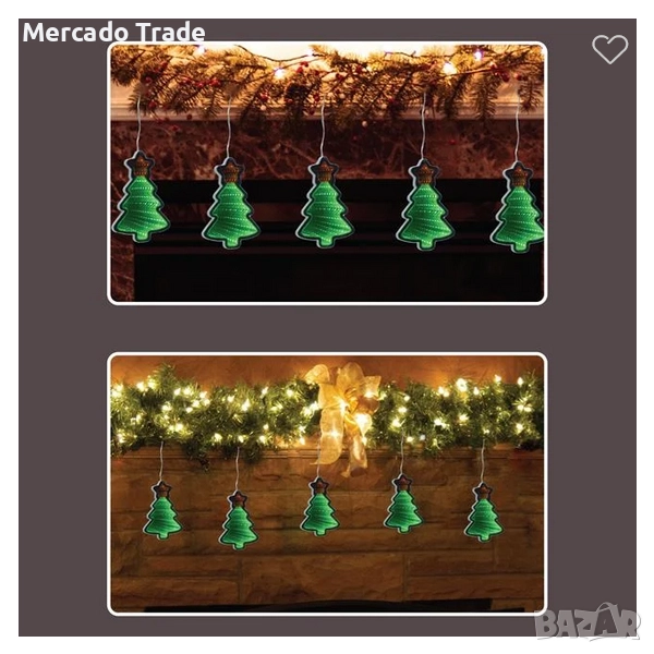Коледен гирлянд Елхички, С огледален ефект, LED светлини, снимка 1 - Декорация за дома - 52633152 Коледен гирлянд Елхички, С огледален ефект, LED светлини, снимка 2 - Декорация за дома - 52633152 Коледен гирлянд Елхички, С огледален ефект, LED светлини, снимка 3 - Декорация за дома - 52633152 1/3