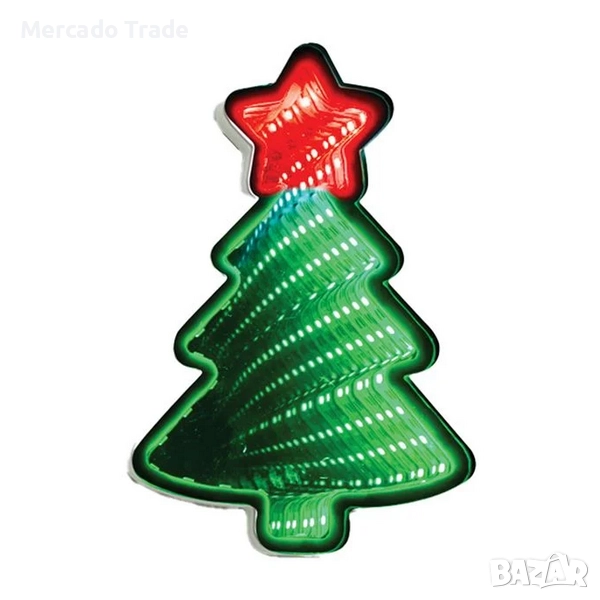 Коледна декоративна гирлянда с 5 огледални лампички във формата на елха. Вътре има зелени и червени светодиоди, които светят по такъв начин, че придават на лампата усещане за безкрайност.