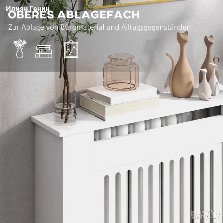 HOMCOM Капак за радиатор, 78 x 19 x 81 см, Капак за радиатор за спалня, хол, MDF, бял - 80.00лв.